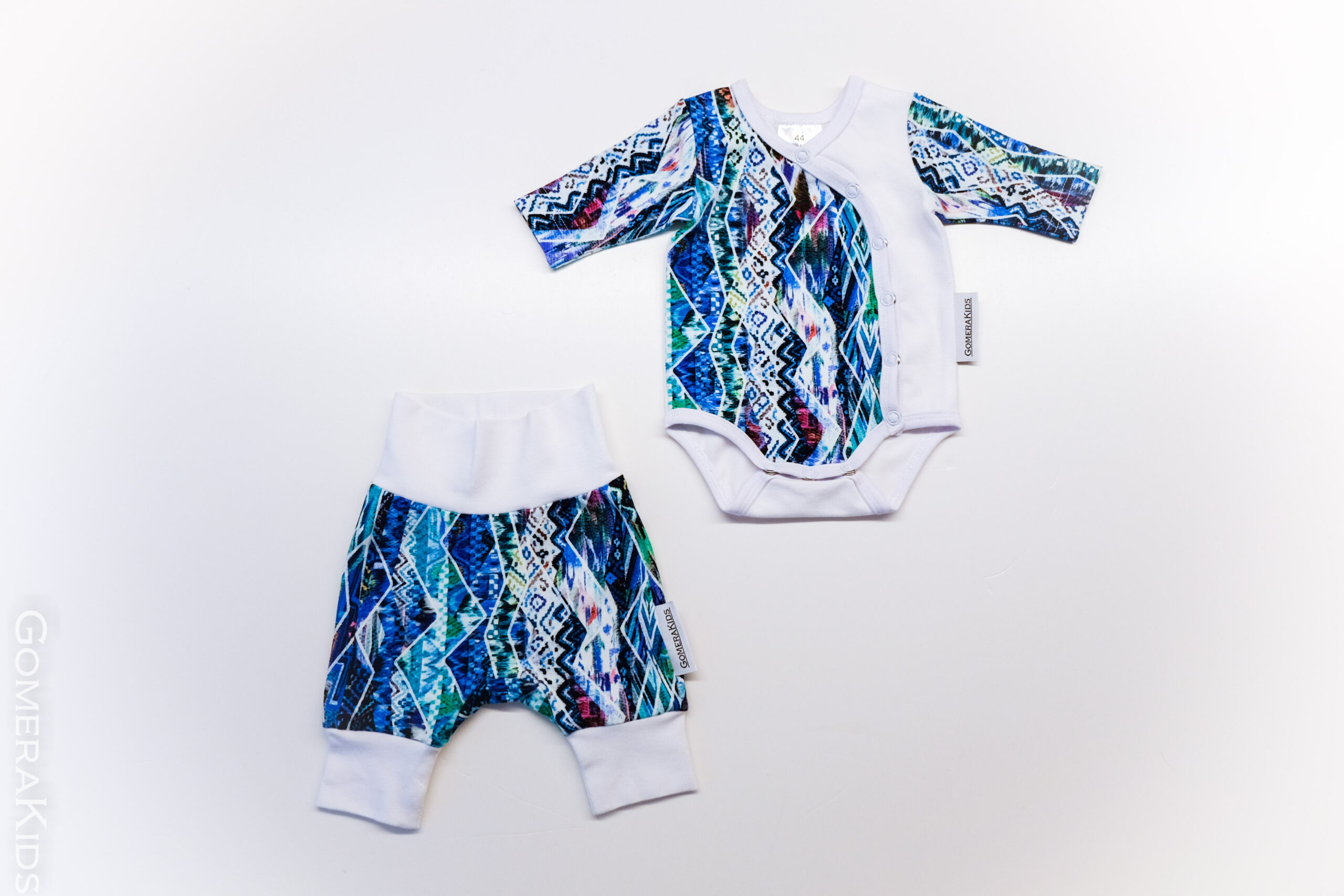 See bodi ja pükste komplekt on loodud kõige väiksemaid silmas pidades – et pakkuda mugavust, pehmust ja turvatunnet elu esimestel sammudel. Efektne geomeetriline muster ja õrn valge loovad efektse, kuid siiski õrna koosluse, mis sobib ideaalselt ka enneaegsele lapsele.