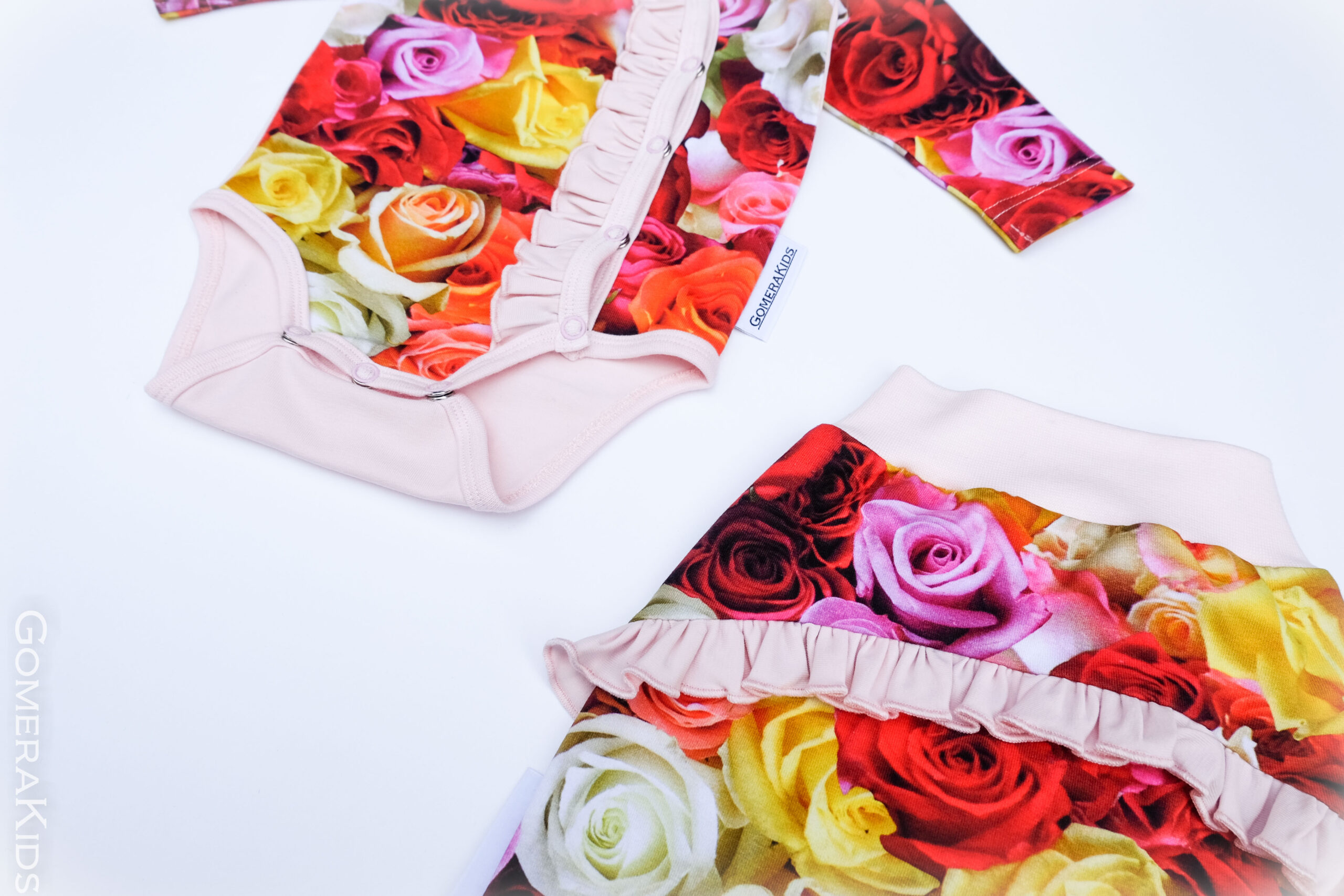 GOMERA satsidega bodi ja pükste komplekt – romantiline lillemeri ja täiuslik pehmus.