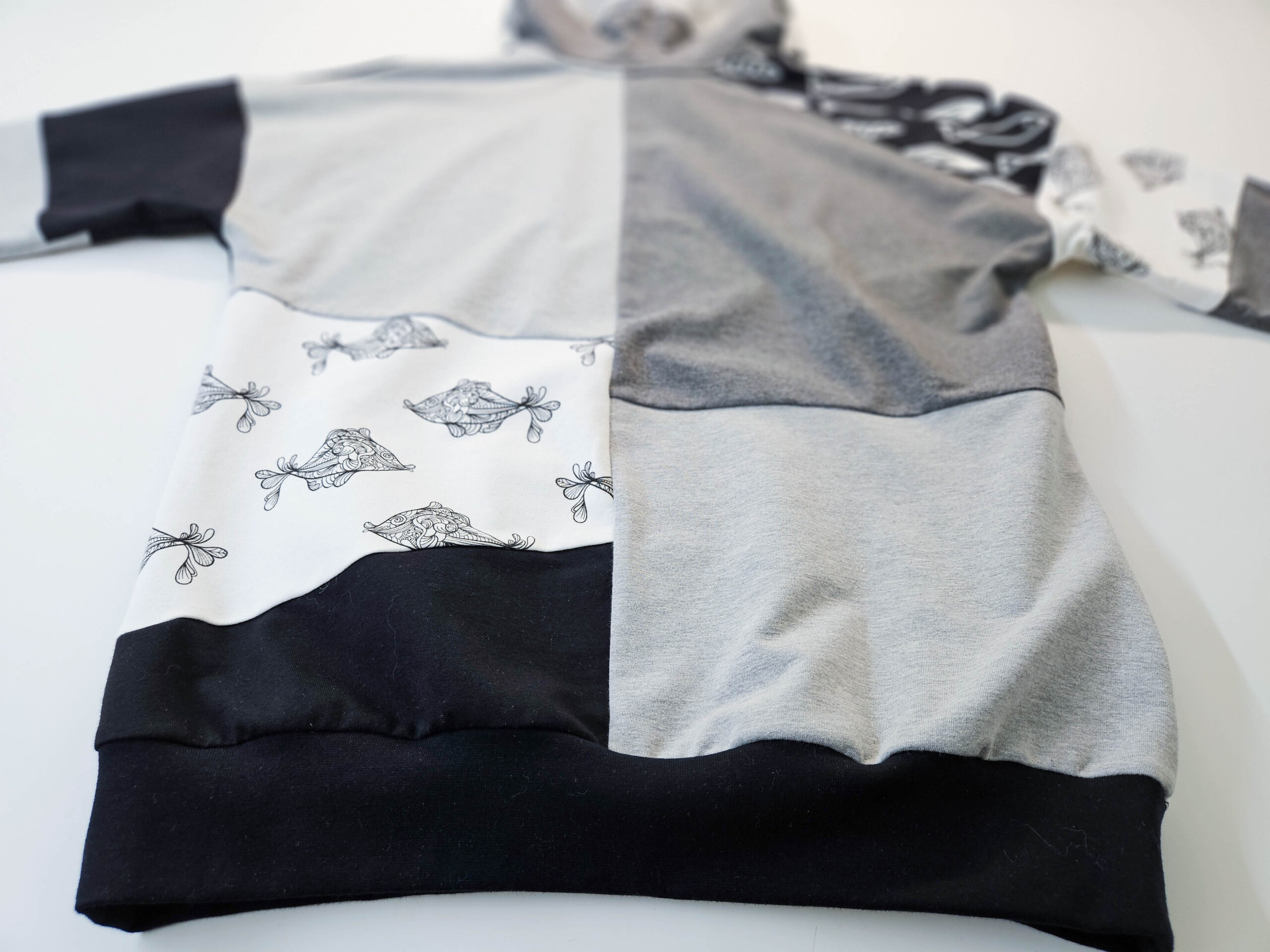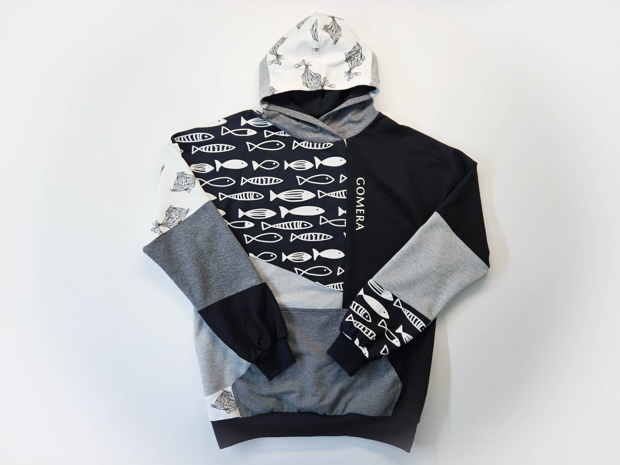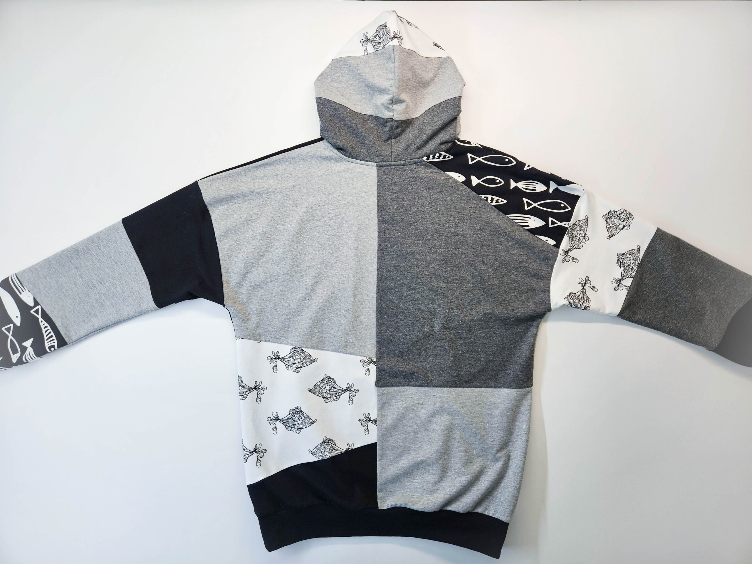 Artisan Patchwork-tehnikas valminud kordumatu Eesti disain ühendab endas julguse eristuda ja kompromissitu kvaliteedi.”Midnight Shoal” on must-hall-valgetes toonides pusa, millele annavad efekti kaks erinevat kalamustrilist kangast. Must-valge graafiline muster annab tumehallile ja mustale laheda skandinaavialiku ja mängulise iseloomu. Pusa esikülge ehib efektne 11 cm helkurlogo, mis on ühtaegu nii stiilielement kui ka turvalisuse tagaja.
