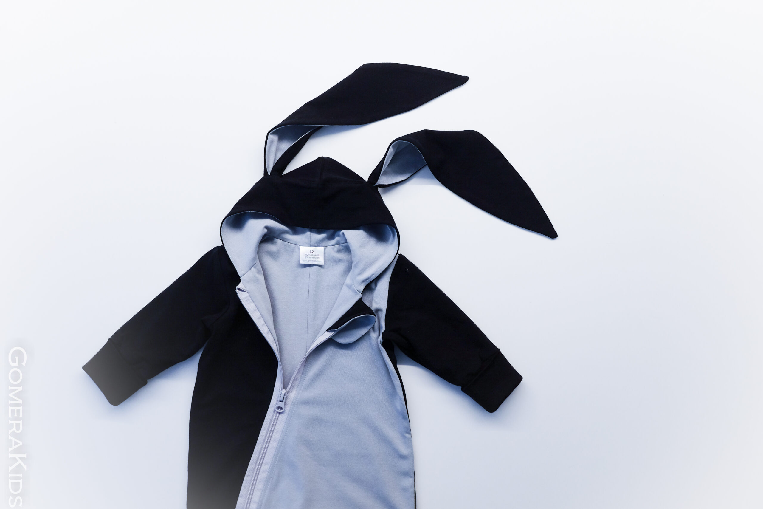 Mänguline ja armas disain: Pikad jänkukõrvad kapuutsil muudavad kombe lapse lemmikuks ja loovad meeleoluka üldmulje.