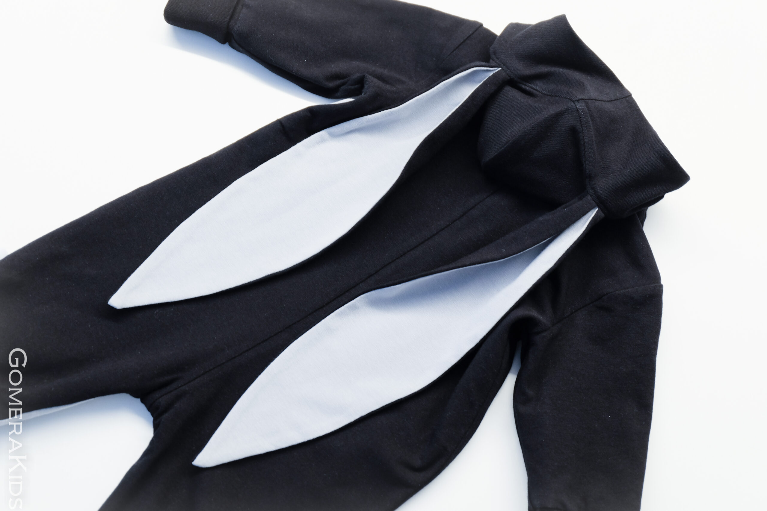 Detailid: Pikad dekoratiivsed kõrvad, pikk lukk, pikendatavad varruka- ja sääreotsad.