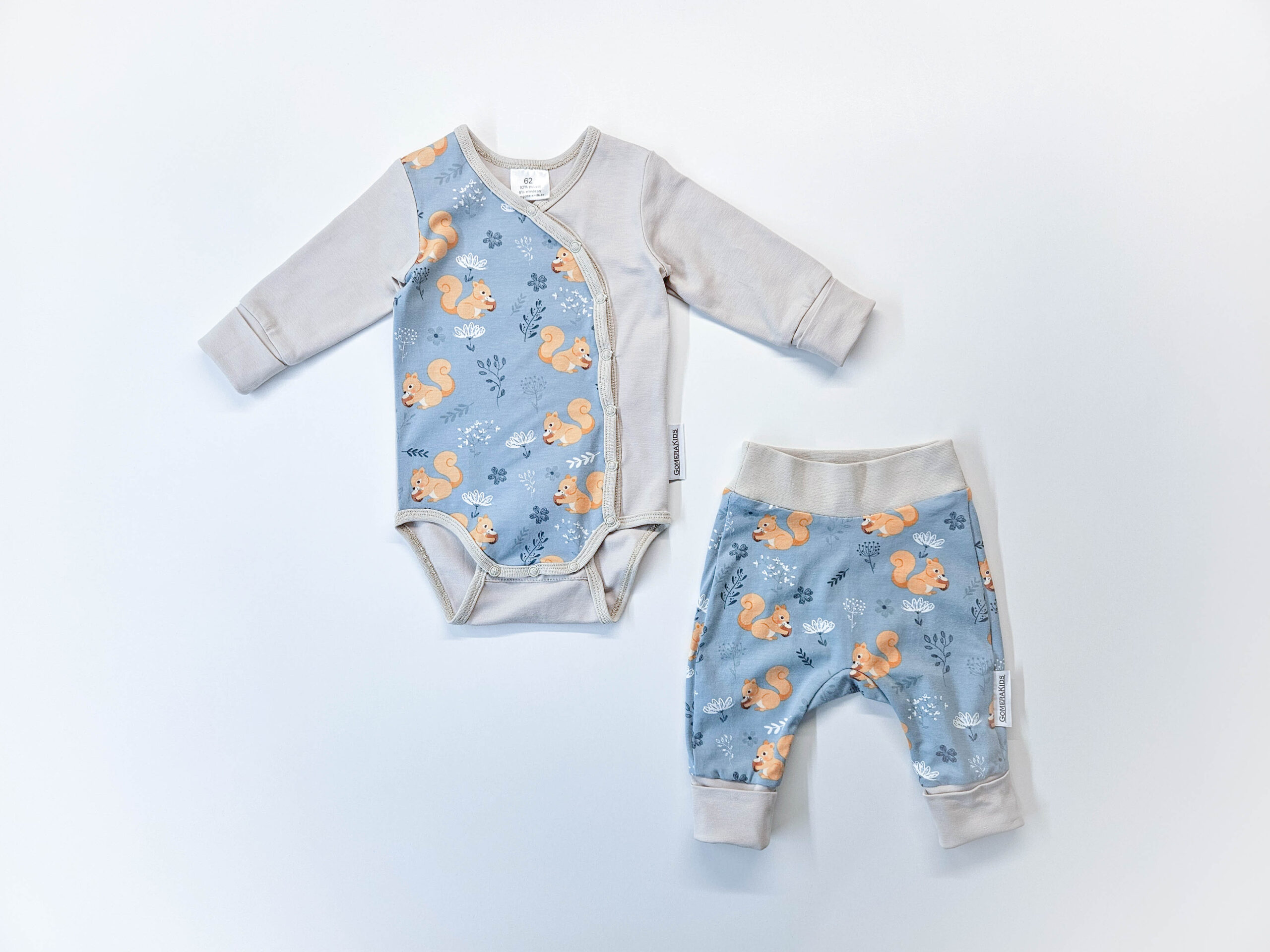 Kasva-minuga disain: Bodyl ja pükstel on spetsiaalsed pikendatavad detailid (mansetid ja topelt-trukid), tänu millele kestab komplekt oluliselt kauem kui tavapärased beebiriided.
