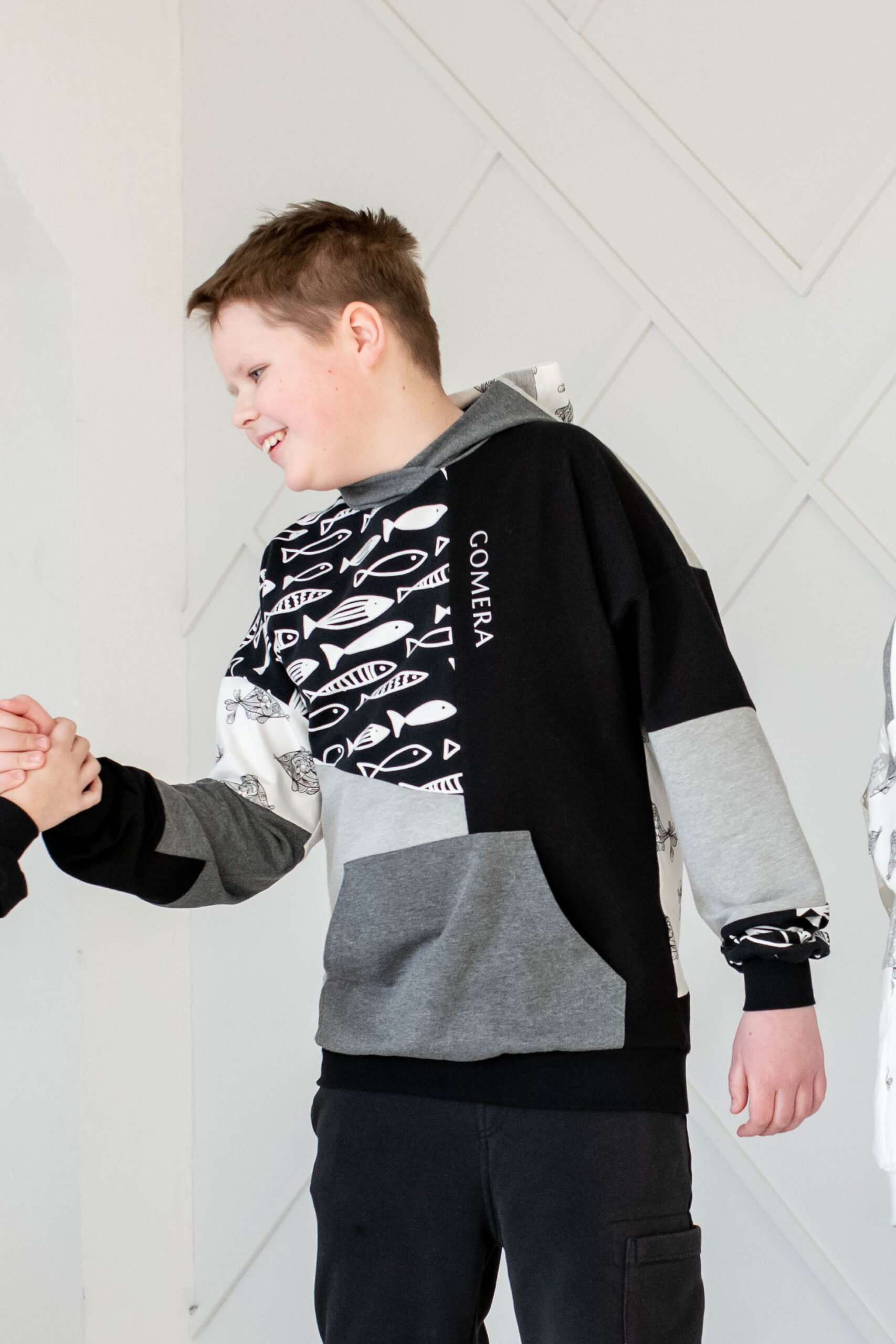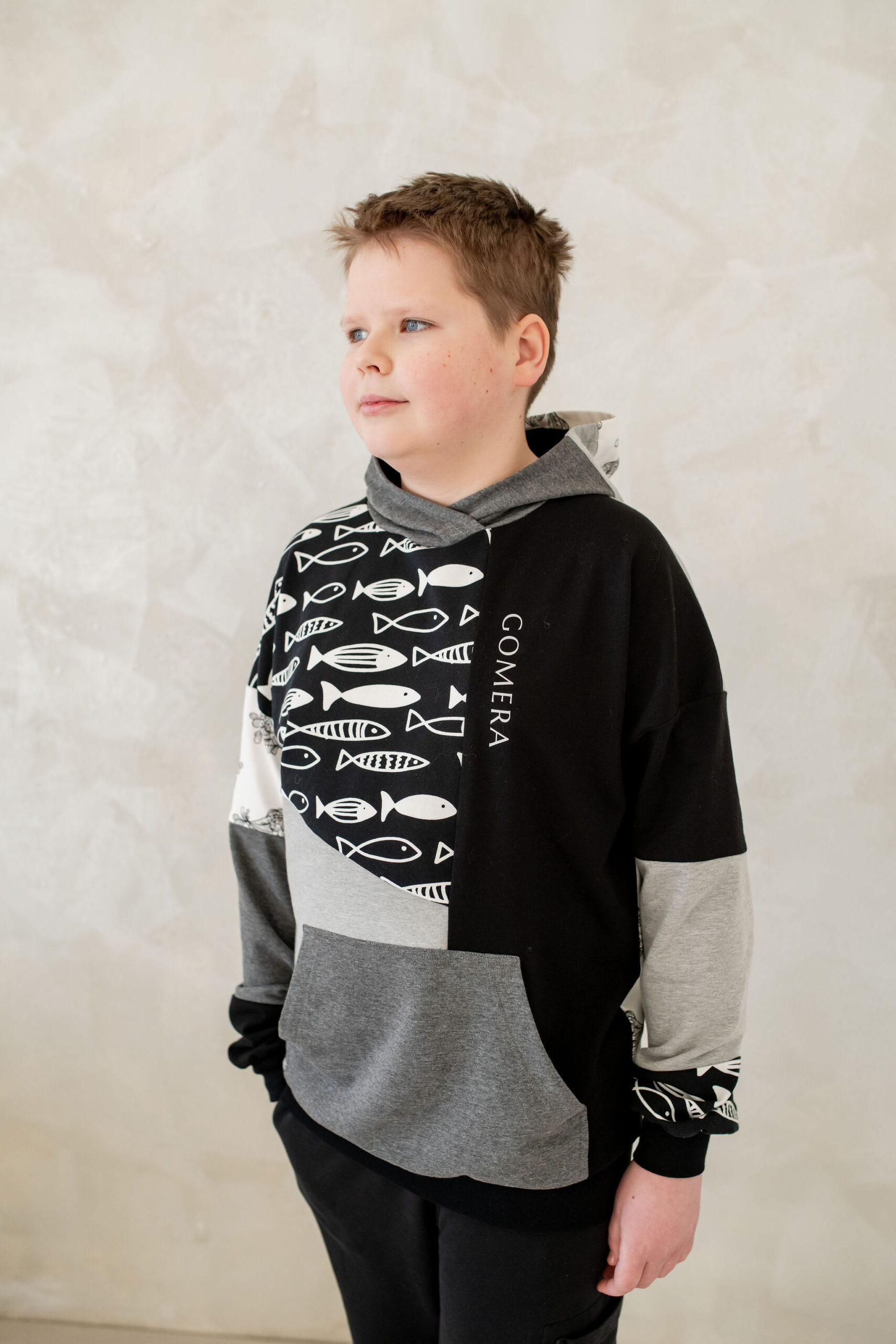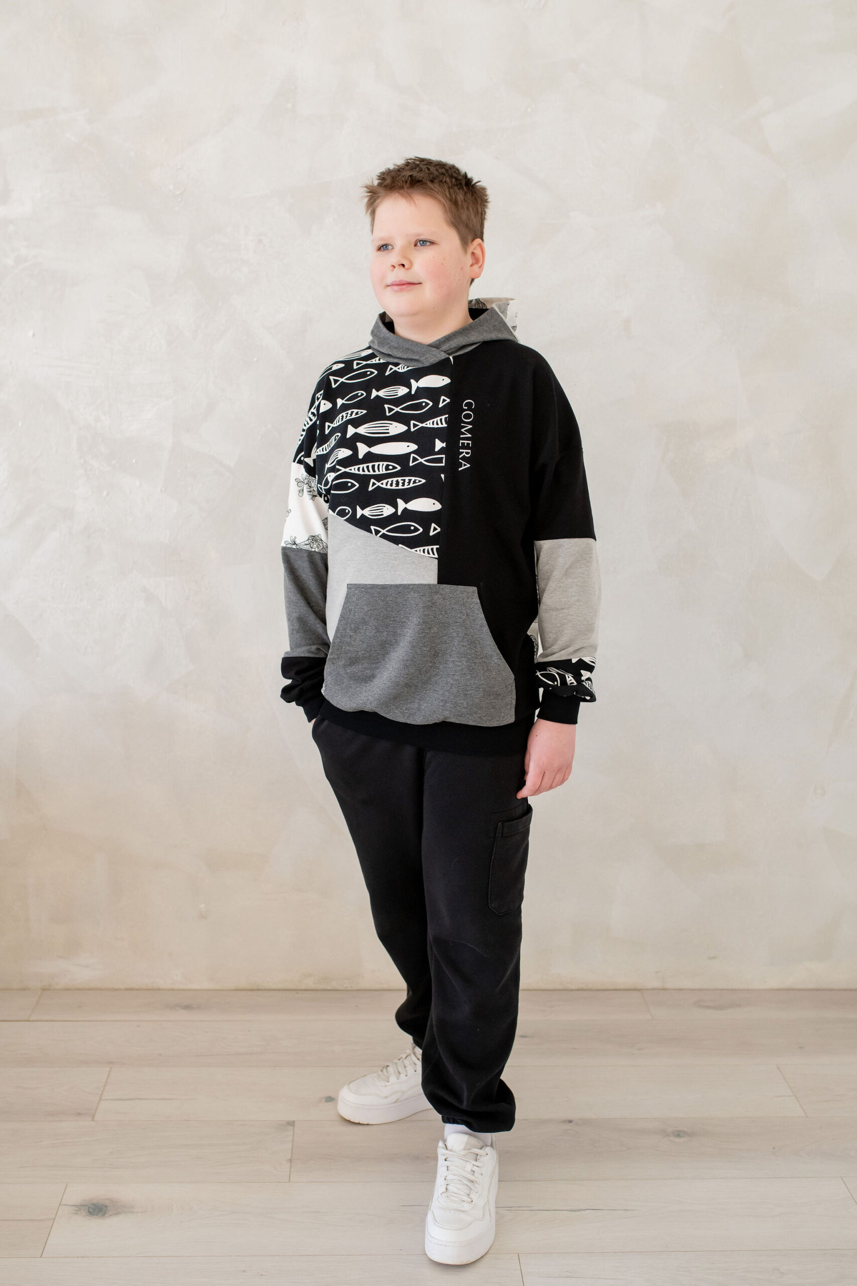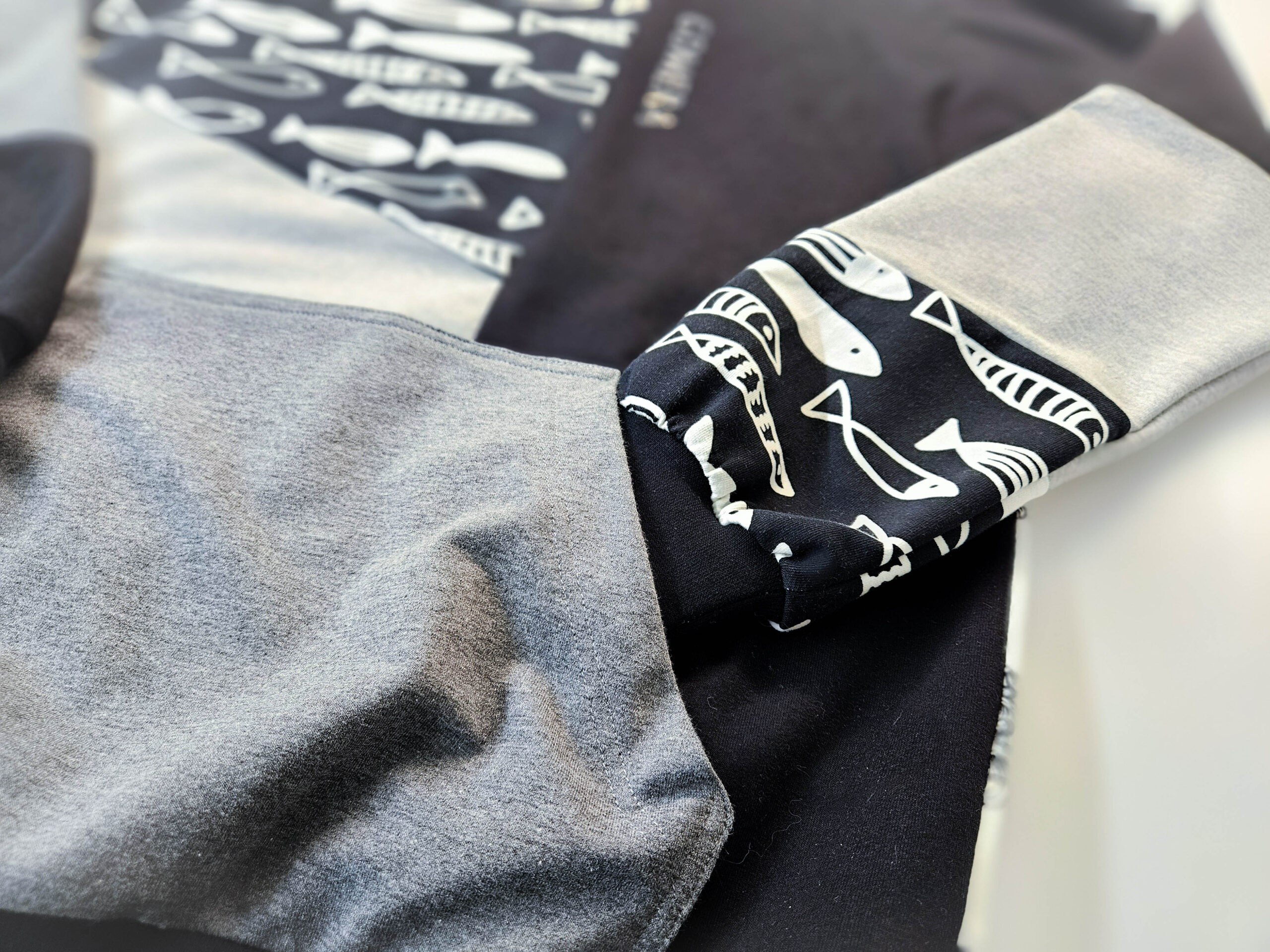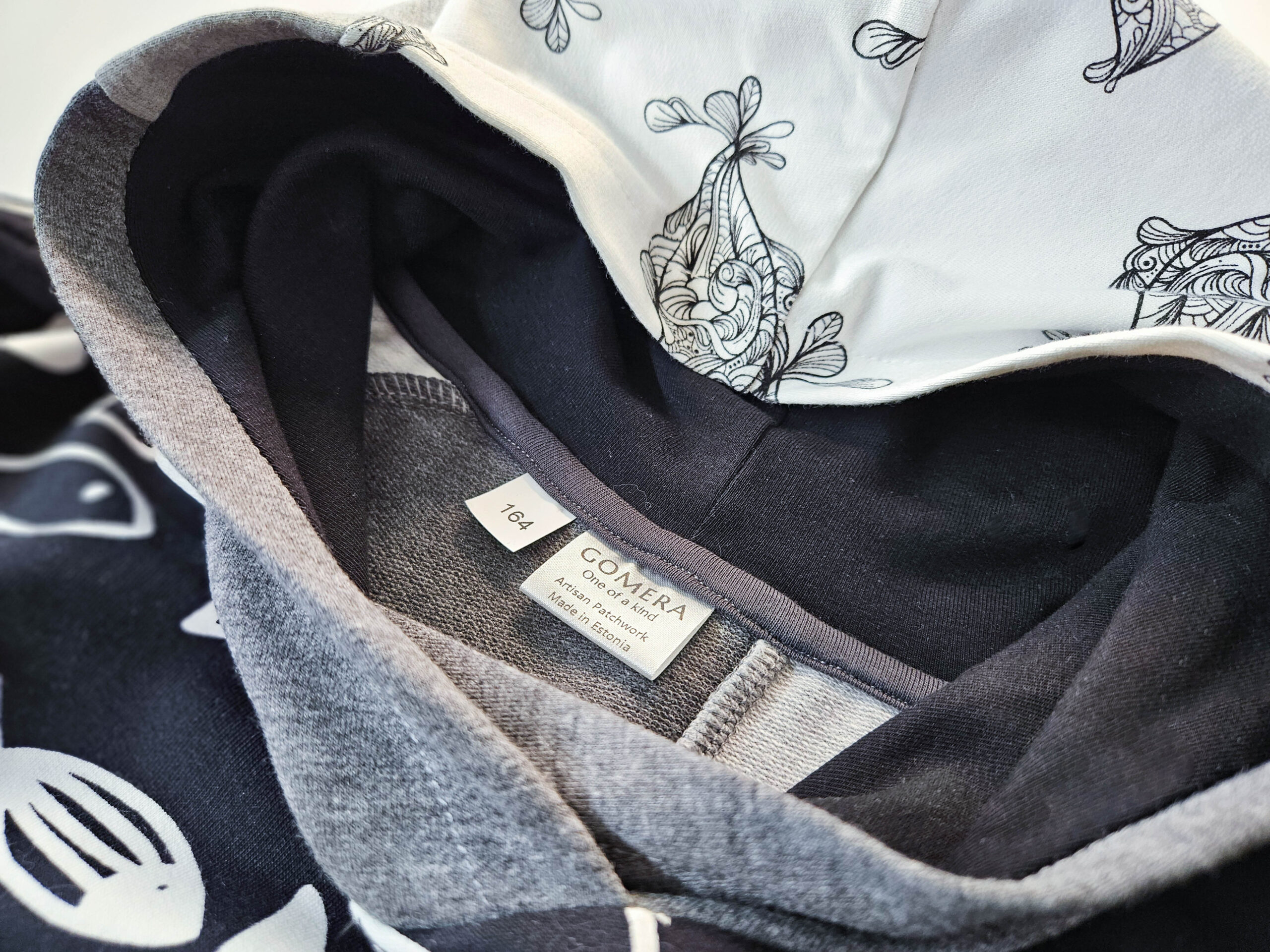 Artisan Patchwork-tehnikas valminud kordumatu Eesti disain ühendab endas julguse eristuda ja kompromissitu kvaliteedi.”Midnight Shoal” on must-hall-valgetes toonides pusa, millele annavad efekti kaks erinevat kalamustrilist kangast. Must-valge graafiline muster annab tumehallile ja mustale laheda skandinaavialiku ja mängulise iseloomu. Pusa esikülge ehib efektne 11 cm helkurlogo, mis on ühtaegu nii stiilielement kui ka turvalisuse tagaja.